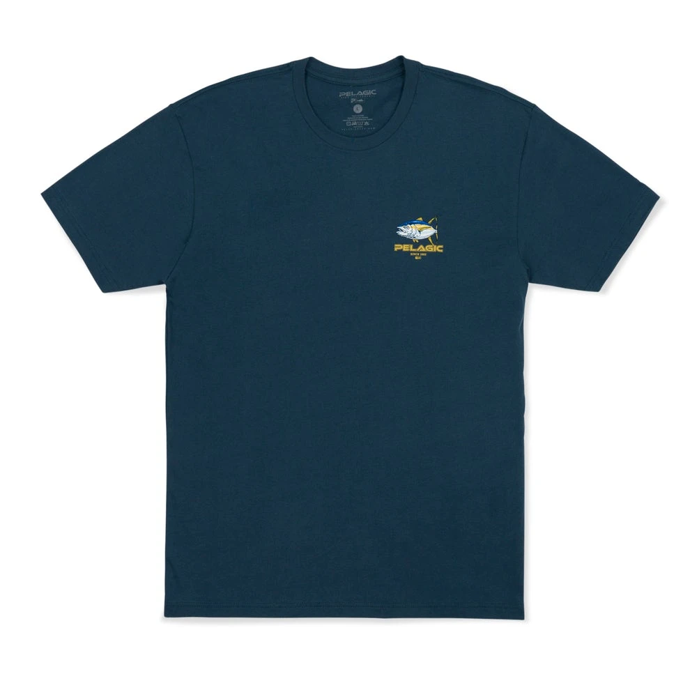 Go big or go home! Built on an ultra-comfortable premium cotton shirt, the Flying Yellowfin Premium Tee features a large, bold yellowfin tuna graphic, encompassed by our heritage High Performance Offshore Fishing Gear motto and stamped with the PELAGIC logo.