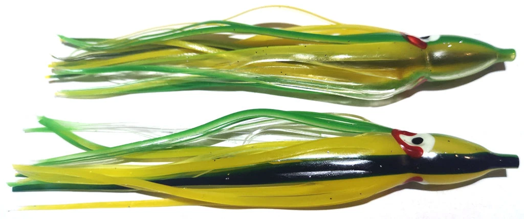 GOLDEN BAIT OCTOPUS 4-1/4″ OC113R – There are 5 hoochies in each pack.