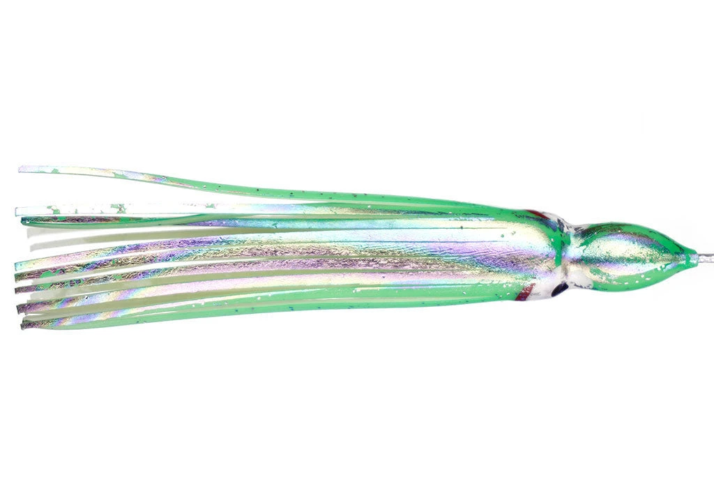 Yozuri OCTOPUS 4-1/4″ RBG76L (GreenOil Slick) – There are 5 hoochies in each pack.