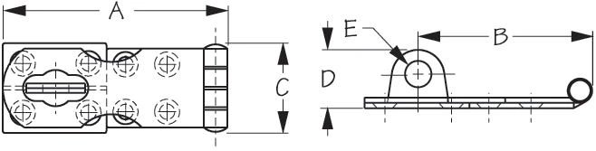 This Swivel Hasp is designed with a slotted plate that fits over a swivel pad eye. The swivel eye rotates acting as a temporary lock, but will accept padlocks with up to a 5/16″ bail for more permanent protection. For added security, all mounting screws are concealed when hasp is closed. Ideal for use on doors, cabinets, dock boxes, and lockers. Constructed of corrosion resistant stamped 304 stainless steel. Installs with eight #8 FH fasteners (not included).