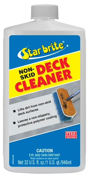 Non-Skid Deck Cleaner is the most effective and easiest way to clean textured fiberglass or painted decks. The special chelating agents loosen dirt and spills without the need for heavy scrubbing. The protective polymers provide a barrier against future stains, making clean up a breeze. It also is ideal for cleaning non-textured areas as well as all fiberglass, vinyl, plastic, metal or rubber surfaces.