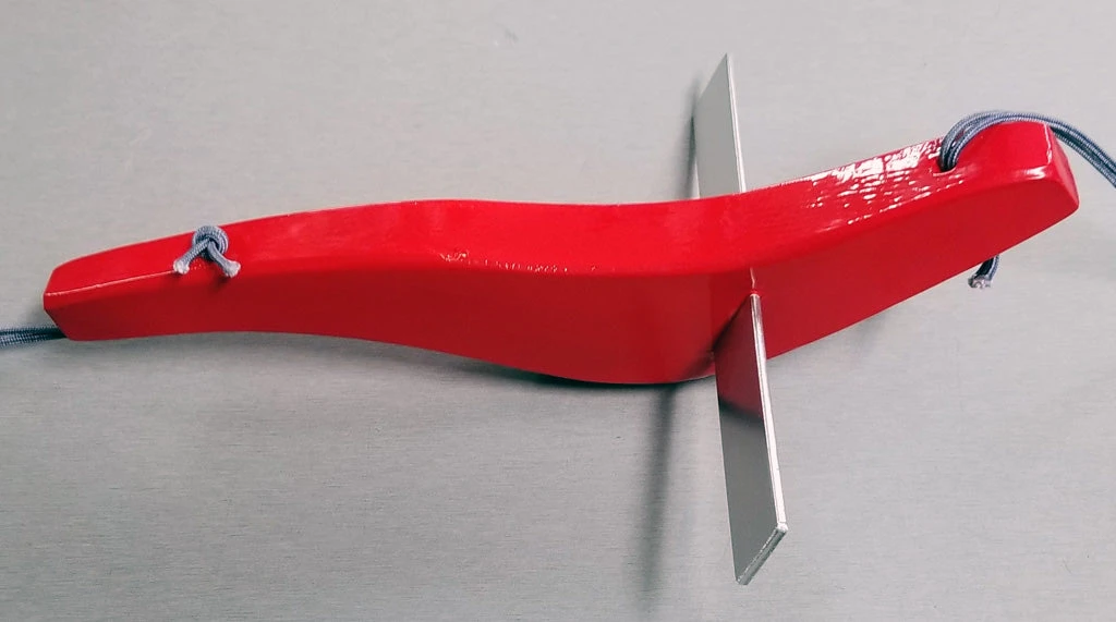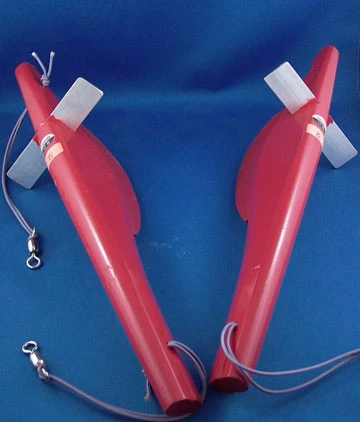 The North Pacific Splashing Float Bird-Style Board is used for surface trolling. It features “wings” that provide a dancing action which produces splashing near the trolling lures to imitate the sounds of a shoal of small fish. When an attached lure is bitten, the float jumps out of the water. Available in Shear(port or starboard) to be used similar to a planer board or straight configuration.