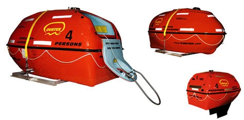 Experts estimate that half of all drowning victims die from hypothermia. Because the Ovatek can be boarded on deck, it will permit the crew of a sinking boat to get inside the life raft without getting wet. They can also be used as a safe heaven to wait out a storm without launching. If required, they can be launched manually from inside/outside or automatically via an hydrostatic release mechanism.