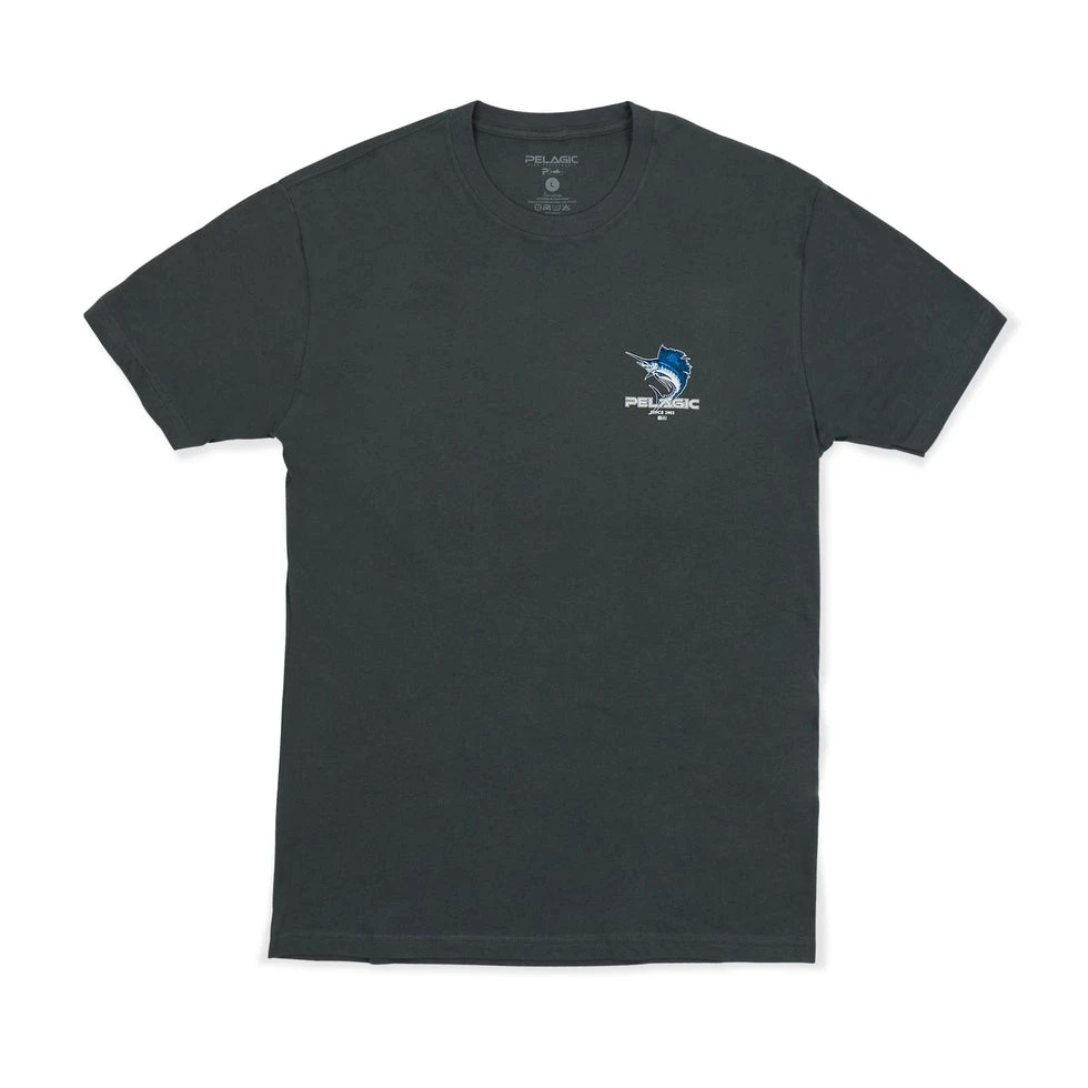 Go big or go home! Built on an ultra-comfortable premium cotton shirt, the Flying Sailfish Premium Tee features a large, bold sailfish graphic, encompassed by our heritage High Performance Offshore Fishing Gear motto and stamped with the PELAGIC logo.