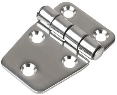 These Short Side Door Hinges are great for interior and exterior applications such as cabinets, hatches, folding tables, or seats where mounting space is tight. Constructed of corrosion resistant stamped 304 stainless steel. Installs with five #8 FH fasteners (not included).