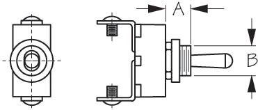 This SPST On/Off Toggle Switch wires easily with two screw terminals. Constructed of stamped brass for durability and corrosion resistance. Maximum panel thickness: 3/8″. 15A @ 12 VDC. Waterproof Cap (420479) sold separately.