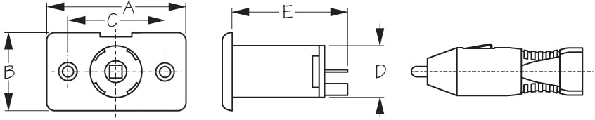 Power Socket with Plug easily adds 12 VDC power almost anywhere. Constructed of injection molded nylon and ABS socket with stamped brass plug contacts. Installs with two #8 FH fasteners (not included). Maximum: 12 VDC, 16A. Cap and plug may be included or sold separately.